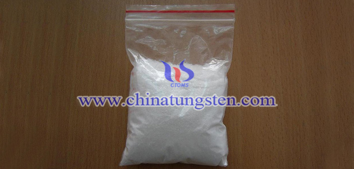 1.結晶溫度低於50℃,析出帶11個結晶水的微細白色針狀仲鎢酸銨結晶。